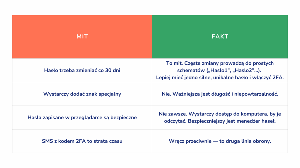 Wniosek jest prosty: najbezpieczniej traktować hasło jako pierwszy etap, a dodatkową weryfikację (2FA) jako drugi.