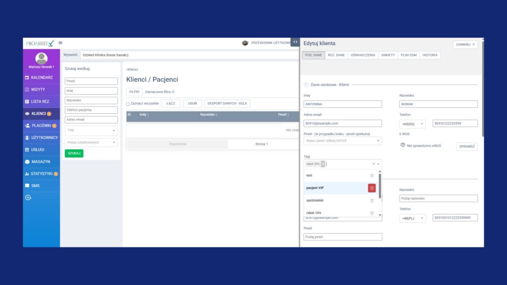 Co więcej, w odpowiedzi na potrzeby użytkowników, wprowadziliśmy funkcję umożliwiającą całkowite usuwanie tagów z globalnej listy. Teraz niepotrzebne oznaczenia można w prosty sposób usunąć za pomocą ikony kosza. Warunkiem jest brak przypisania tagu do jakiegokolwiek pacjenta, co zabezpiecza przed przypadkowym usunięciem oznaczeń będących wciąż w użyciu.